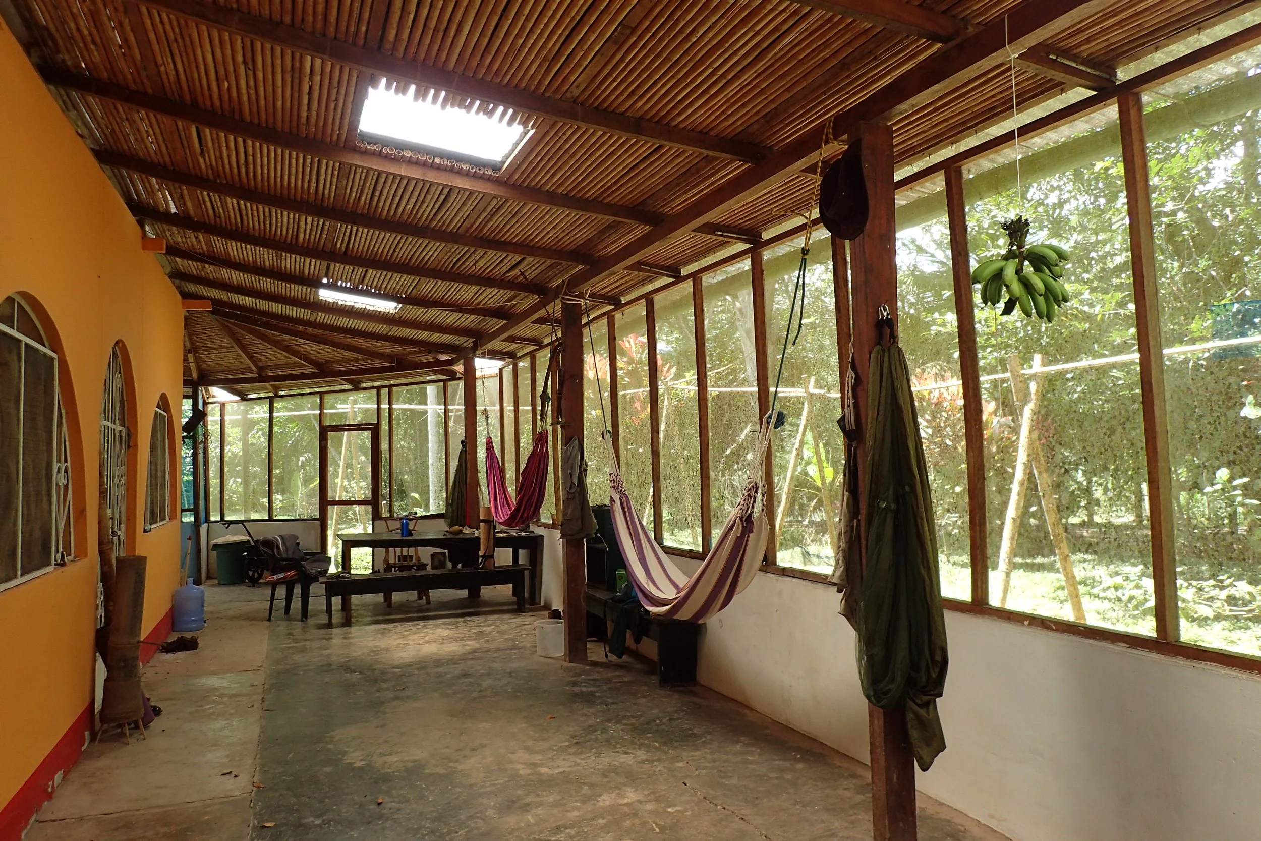 All facilities used by Imaymana are built using traditional material, such as bamboo, clay, canes, and wood. In the ‘jungle’ house (located in the Yanapay forest) there is a main house with a kitchen, one bathroom, and three rooms which are all equipped with mosquito nets. In each room there is a mezzanine bed, as well as a hammock. In addition, there is a yoga cabin on the premises.