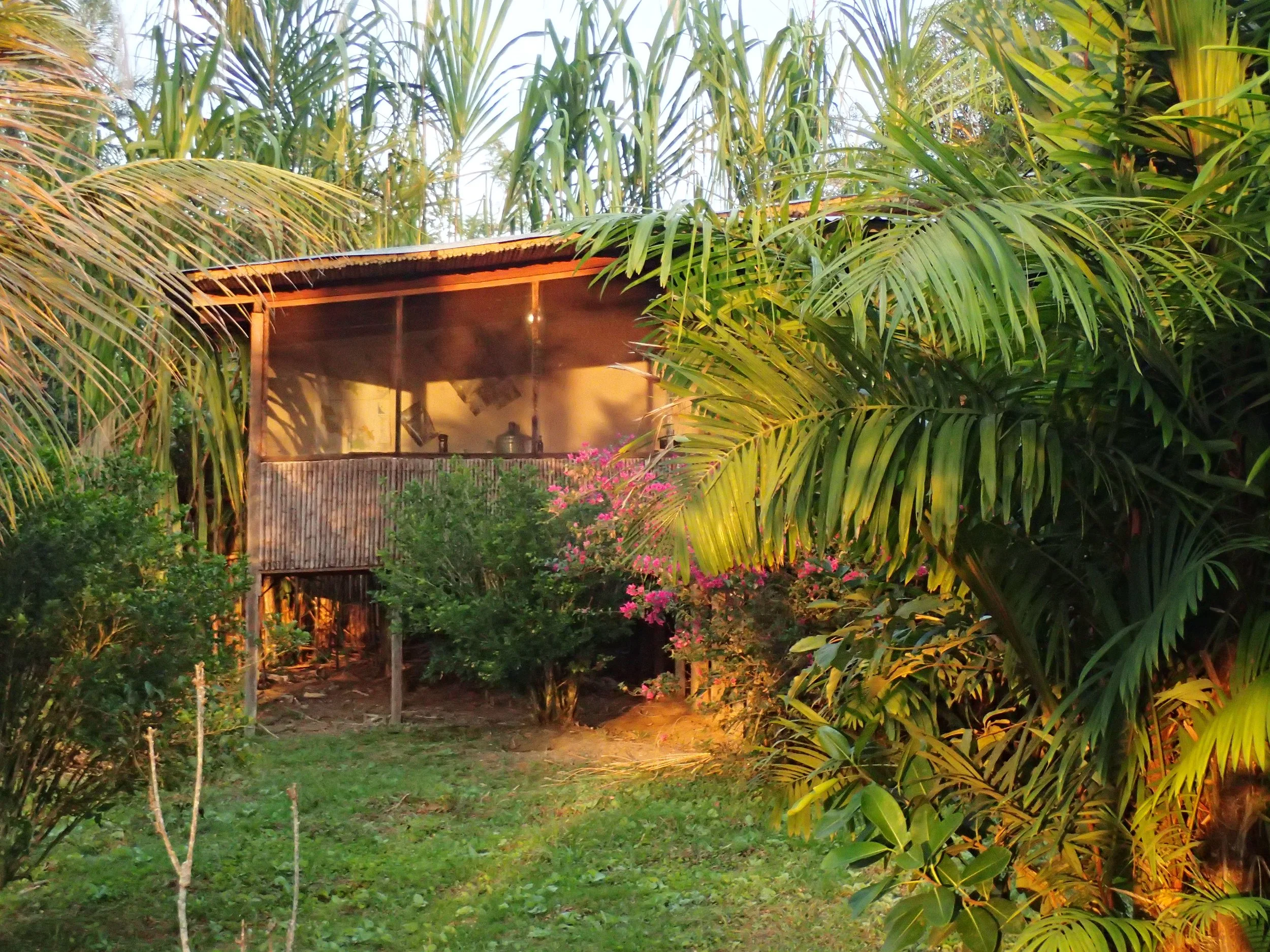 The river is only a few steps away from the house – meaning you can have the luxury of swimming and bathing in fresh water every day. It's an ideal refuge for finding peace; an perfect place of meditation, creativity, recovery, inspiration, and deep connection with self/nature. No roads come near, so you don't hear the sound of engines, except occasionally the small farmers' boats going to their land. To get there, you either have to walk 45 minutes from the nearest road, or take a boat from the port or Tahuisco, Moyobamba.